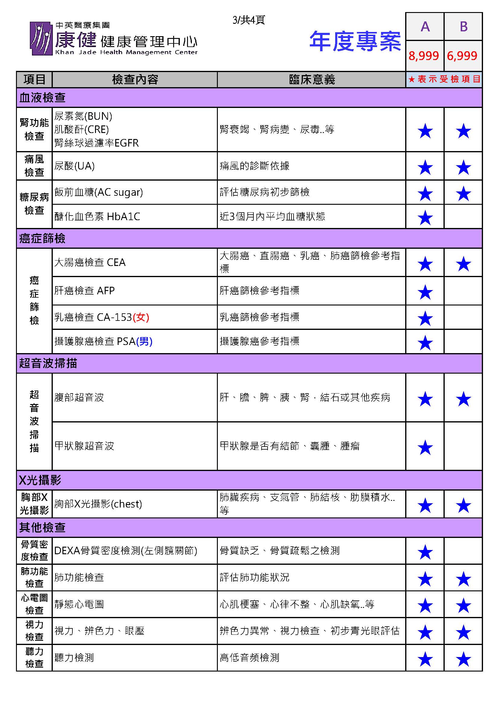 超值健檢套餐